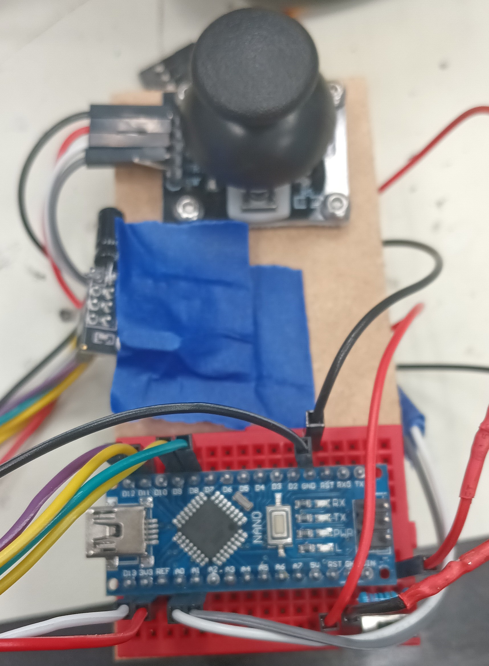 The Arduino Nano, the joystick module, the small breadboard, and the wireless module are all mounted on a small, rectangular board with the battery velcroed behind. The battery powers the Arduino Nano that contains the code to read the analog values of joystick based on its position, convert the values into bytes (integers 0-255), and transmit those values through the wireless module to be received by the wireless module of the Arduino Nano on the car chassis. With the switch, the remote can be turned on and off. The Arduino Uno on the car chassis processes the received values and based on them, commands the motor driver to power the wheels in a certain direction. For example, holding the joystick forward will move the car forwards, holding it backward moves the car backwards, and vice versa for turining left and right. The entire car chassis is also powered by a 9V battery.Progress